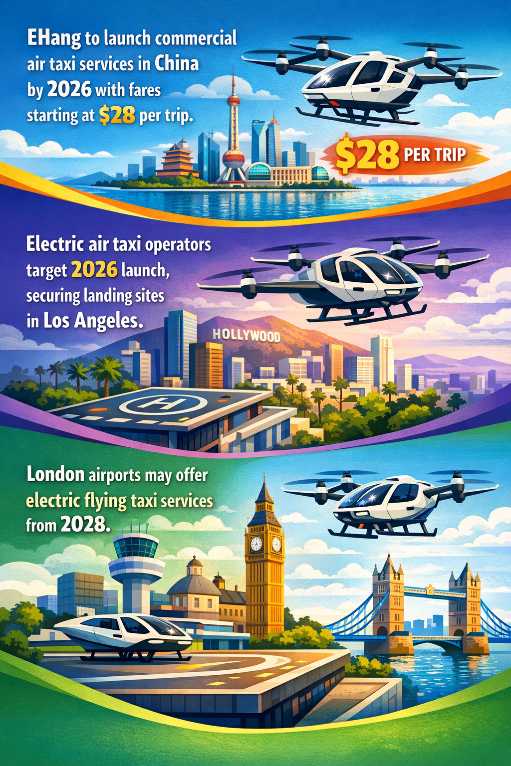 | Commercial Launch Timeline (2026-2028) | Accelerating | Mentions in 6+ articles in late 2025 with confirmed plans for launches in 2026-2028 | Strong focus on initial commercial rollouts in multiple global hubs: Los Angeles, London, Middle East (Dubai/Riyadh), Saudi Arabia, Abu Dhabi—reflects nearing operational reality. |
